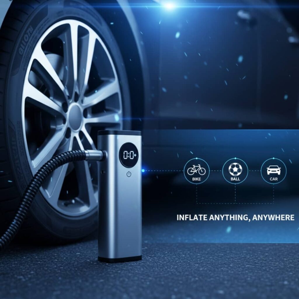 It can inflate car tires, bike tires, motorcycle tires, and even balls .. anytime, anywhere.